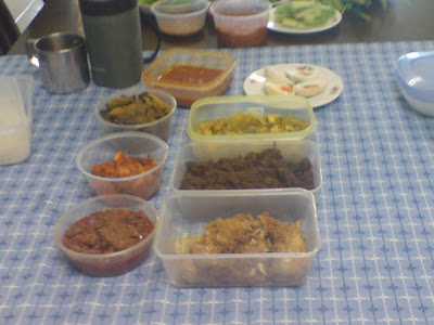 makanan dah siap diatur di atas meja. terima kasih kepada perancang jamuan makan ulam Dik Noor kita kerana sponsor lapik meja yg tak seberapa nak cantik sangat. tapi bolehlah.