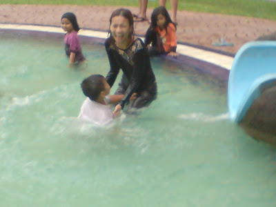 Masa memang selalu mencemburui, cuti 3 hari cam tak rasa pun, sekejap je dah hari senin. Nasib baik ada akitiviti ngan anak-anak , tak de lah rasa sia-sia je cuti tu.Jumaat aku duk rumah je, sabtu ngan ahad lepak rumah yuyi sebab dah janji ngan Firdaus mandi kolam kat situ. Lepas beli rojak, terus tuju rumah dia.