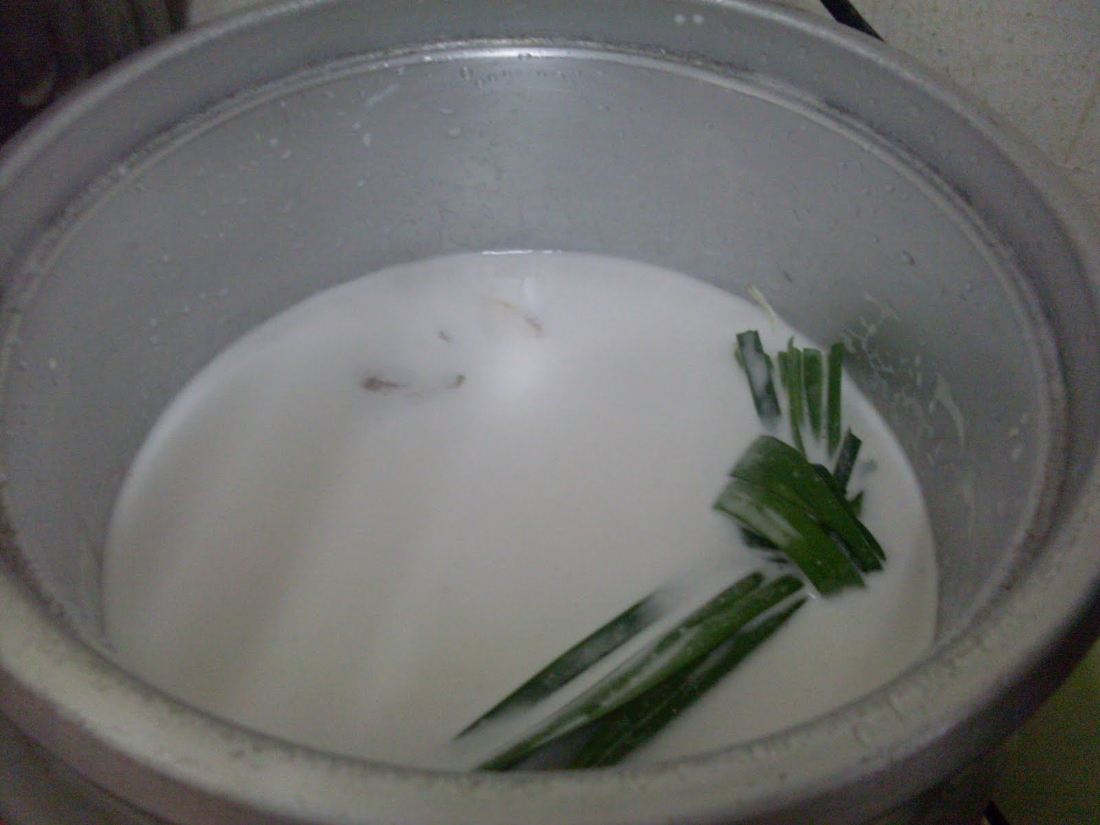 Nasi lemak ada pantang, tak boleh kacau selagi dia belum kering-atau kalau guna rice cooker -keep warm, lepas keep warm baru boleh kacau kemudian biarkan dalam keadaan keep warm supaya dia masak sepenuhnya.Kat rumah ni kalau masak bubur atau nasi lemak aku guna beras wangi sebab sedap dan tak perlulah nak letak lebih santan.