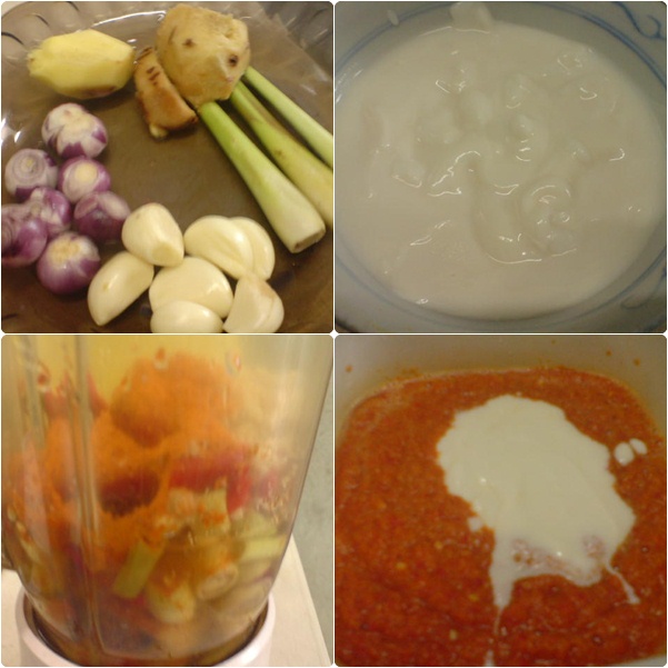 1)kisar 5 biji cili masak , bawang putih & lengkuas & serai & halia